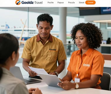 Gooldz-Travel adalah platform perjalanan digital yang hadir dari Papua untuk Indonesia dan Global. Kami menyediakan layanan pemesanan tiket pesawat, kapal Pelni, hotel, rental mobil, dan paket wisata dengn sistem yang mudah, cepat dan terpercaya.